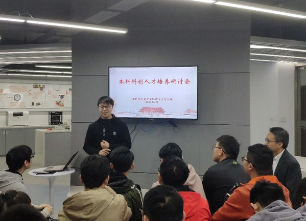 刘志东老师从立德树人的角度论述了本科科创人才培养的重要性,分析了以科研团队为载体的本科科创人才体系化培养的必要性,并以一名老党员的身份,从研究生纵向党支部发挥主体能动性的角度论述了党建与研究生及本科人才培养的相互关系。最后,刘老师还从国际化的视野,对中美现行的基础教育及高等教育体制进行的比较分析,论述了拔尖创新人才需要具有的基本素质,鼓励同学们要站在国家民族复兴的角度看待自身创新能力的培养,立志成为一名科技时代的科创先锋。
