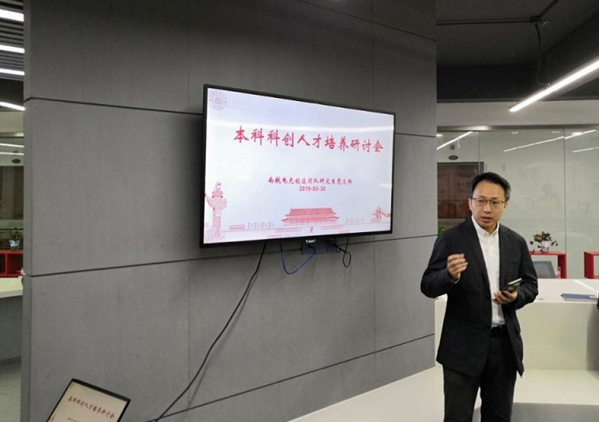本次研讨会是一次本科生高素质人才培养的积极探索,第一、以教师团队+研究生纵向党支部的本科德才兼备培养体系的探索。成立“电光创新学院” ,构建本科科创人才培养所需的人、财、物综合统筹保障体系。通过“以研带创”,选拔优秀研究生党员以纵向党支部为依托,与优秀本科生形成全方位的对接。第二、突破归口边界、对不同类型本科生创新人才融合培养的尝试。针对目前本科生创新人才培养纵向归口管理部门不同,人才培养方式存在差异性,在不同科创团队之间取长补短、相互融合,形成打通人才培养“孤岛现象”的新模式。第三、“教师-研究生导师-本科科创人才”三位一体的科创指导体系探索。鉴于目前大部分具体科研课题都由研究生实施,因此强化研究生的中坚作用,采用“研究生导师”聘任制度,将研究生最接地气的科研技能及经验传授给本科生。为了更好的突出本科创新人才的培养重要性,本次研讨会特意选择在本团队精心建设的创客空间内进行,并开辟了其中一角成立了创客活动角,目前已经有两支团队进驻。