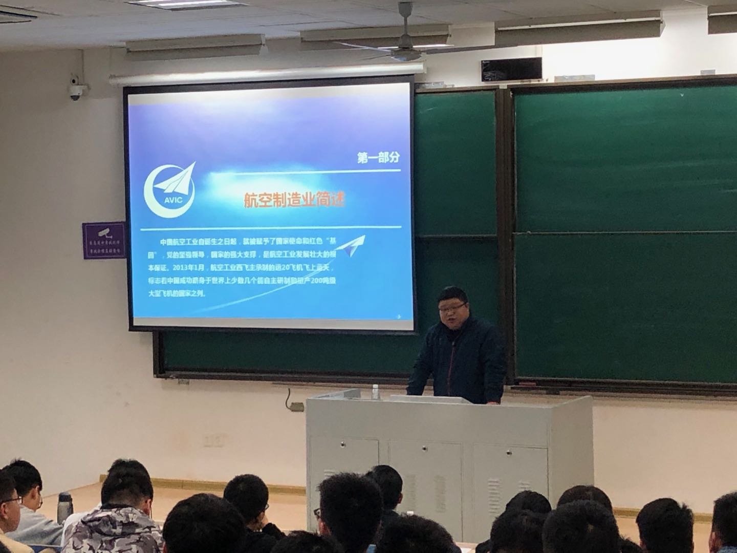 讲座过程中,赵安安从航空制造业的定义及特点、西飞数字化制造技术内涵及体系、飞机装配智能制造探索、我们所肩负的带动国家高级技术产业发展的责任和使命四个方面入手,为同学们讲解了飞机制造数字装配产业的现状、发展和未来前景。赵安安在讲座中说道,航空制造业具有一强(带动性强)、二大(大投入;大风险)、三高(高知识;高技术;高端人才)的特点,所以作为新时代的航空人必须要认清,航空是国家战略尖端科技力量,肩负带动国家高级技术产业发展责任。所以我们要警惕盲目乐观主义,认清自身的不足,发扬创新敬业的精神,才能不断攀登技术高峰。