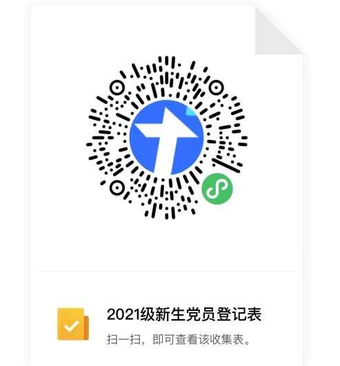 (1)填写《2021级新生党员登记表》(小程序二维码见下图),预备党员不填“转正时间”;“所属纵向党支部”一栏需向本课题组了解清楚后填写。请于10月8日12点前完成填写。
