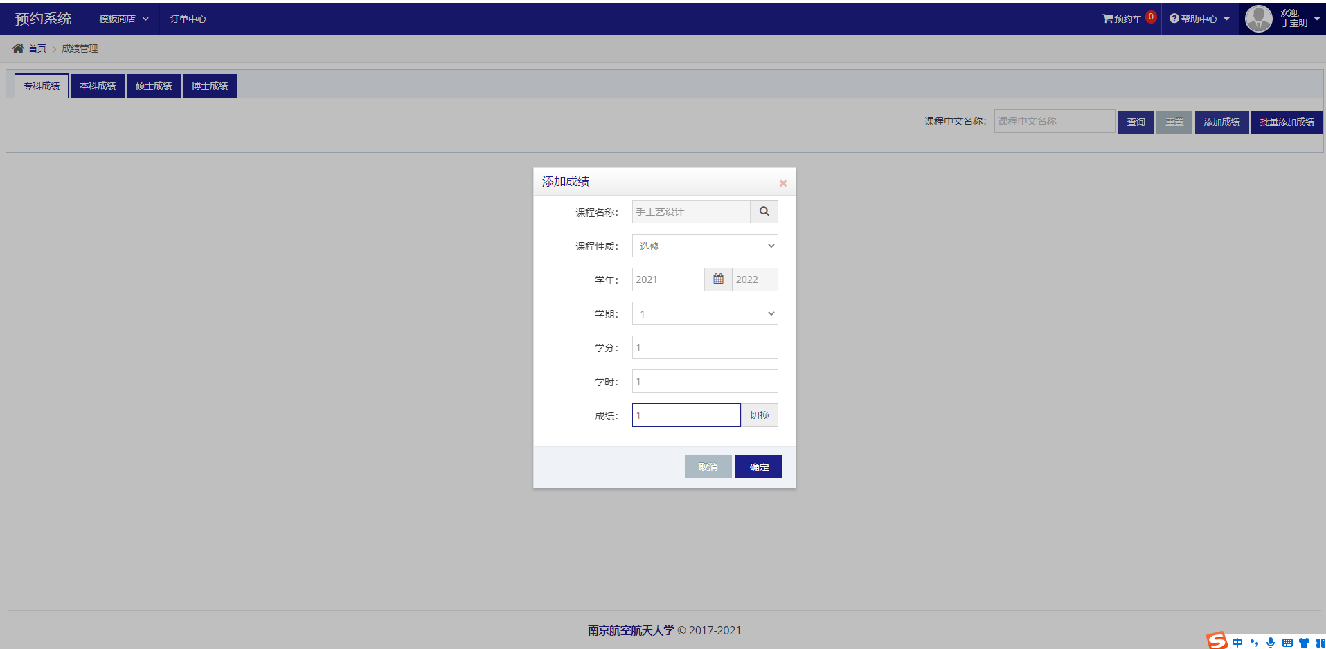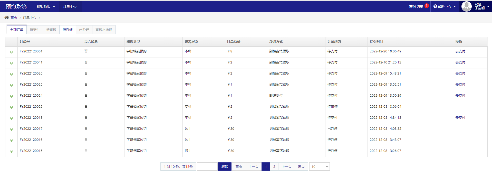 学籍档案预约:用户用于订购自己的需要的模板,成绩单、在学证明、毕业证明等等。