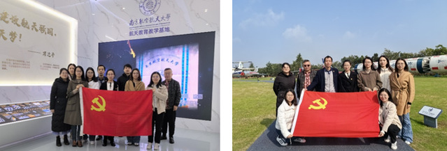 实践学习环节,机关党支部参观了南京航空航天大学航天教育教学基地以及“御风园”。航天教育教学基地集中展示了中国航天的发展历程,以及航天“星、箭、弹、船、器”的技术型谱、设计原理、整体结构等相关内容,生动诠释了航天精神,现已成为集专业导学、思政教育、航天科普等功能于一体的育人场所、文化场所。走进“御风园”,从新中国第一架自行制造飞机、参加过抗美援朝战争的米格-15、新中国自行生产的第一型飞机初教-5、第一架无人驾驶大型靶机长空一号等,重温我国航空航天发展史,感受一代代航空人筚路蓝缕、勇往直前的奋斗精神。依托实景基地近距离接触国之重器、全方位了解空天装备、沉浸式感受国防文化,提升党支部实践育人的活力和实效性。