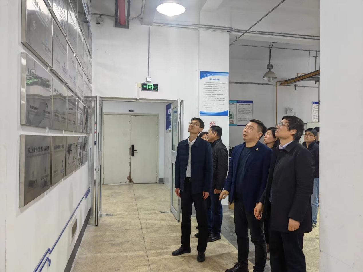 在现场考察环节,傅玉灿带领专家组参观了学院主题特色实验室,并向专家介绍学院人才培养情况。袁军堂代表校外预评估专家参与了考察交流。