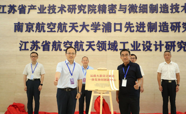 赵建社教授与刘建副总裁为运载火箭设计制造一体化协同创新中心揭牌