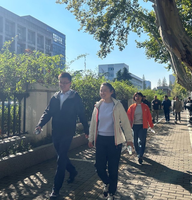 合影留念后,学院党委书记刘虎、党委副书记兼工会主席赵铮带队出发,老师们精神抖擞、兴致勃勃,沿着规划的路线,大步流星、健步而行,形成秋日里一道亮丽的风景。