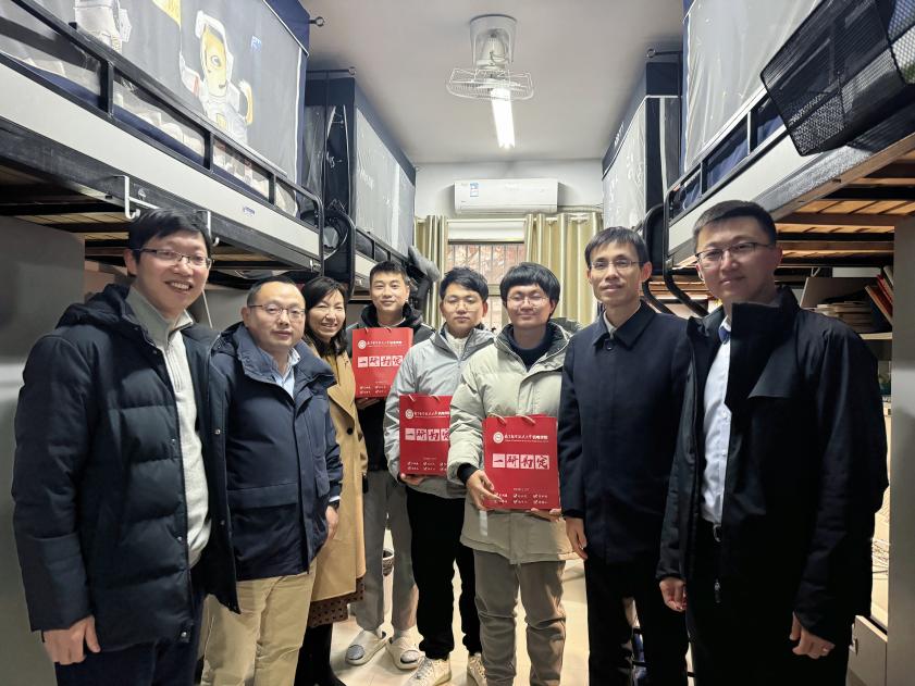 为缓解学生考研压力,坚定考研信心,12月9日,酷爱成人网 党委书记刘虎,党委副书记赵铮,副院长朱栋、于敏、丁文峰,毕业班辅导员王曦、聂敏敏前往学生宿舍为考研学子送上精心准备的考研加油包。