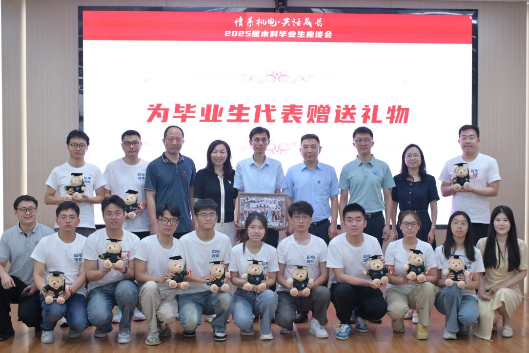 活动尾声也迎来温情时刻,与会领导老师为毕业生代表赠送了学院精心准备的毕业礼物,毕业生代表也向学院回赠了纪念礼物,表达对学院的深厚情谊。