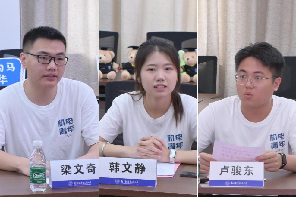 座谈会上,毕业生代表们深情回顾了在南航求学的青春岁月。机械工程专业梁文奇、飞行器制造工程专业韩文静、智能制造工程专业卢骏东分别从学业发展、学生工作、科创实践等方面分享了成长故事,表达了对母校和学院的感恩之情。同学们积极建言献策,围绕专业课程建设、专业分流衔接、毕设环节优化、就业升学指导等方面提出了宝贵建议。