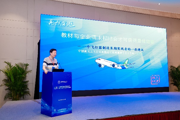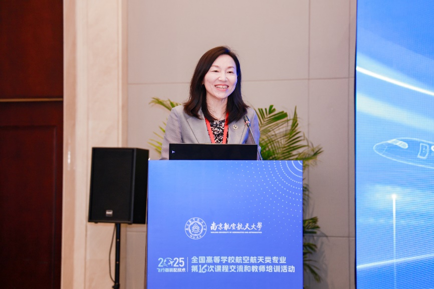 南京航空航天大学党委常委、党委组织部部长、党校常务副校长兼党委统战部部长王晖教授致辞,对与会代表表示欢迎,指出了“飞行器装配技术”课程建设的深远意义,并介绍了南京航空航天大学飞行器装配领域的教学与人才培养情况。