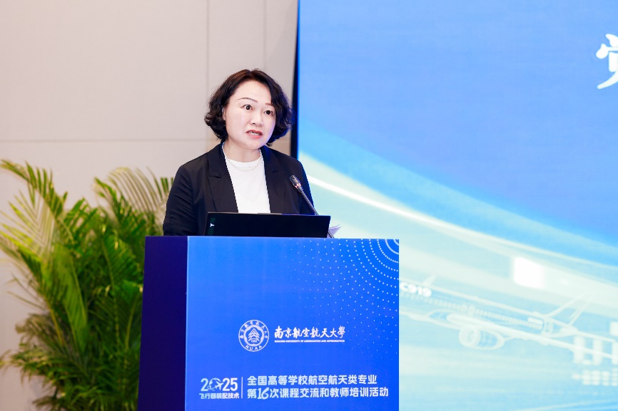 教指委副主任委员、北京理工大学刘莉教授代表教指委对会议召集人、课程召集人、承办单位、协办单位、报告专家和所有参会教师致以谢意,指出教指委始终高度关注、全力支持航空航天类专业教学的创新发展,并强调了组织全国高等学校航空航天类专业课程交流与教师培训活动的重要性,希望与会教师在本次活动中深入开展教学经验与改革思路的深度碰撞,全面提升航空航天类专业教学与人才培养质量,预祝本次活动取得圆满成功。